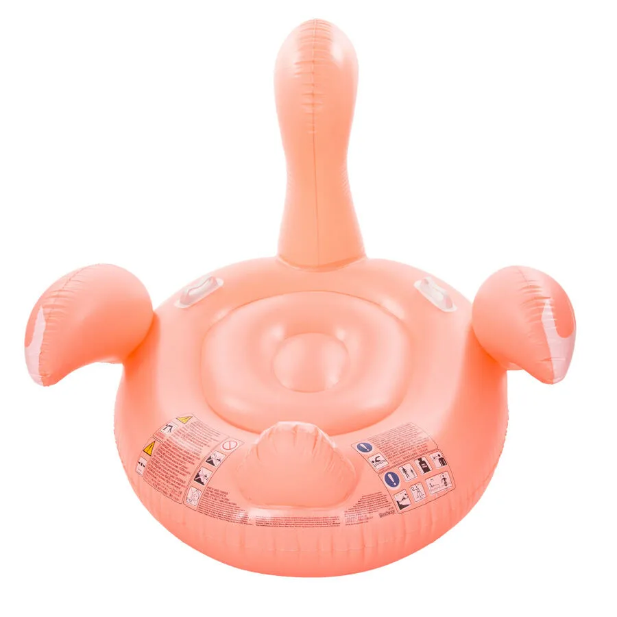 La estructura de esta colchoneta hinchable flamenco gigante cuenta con múltiples cámaras de aire que le dan una estabilidad superior. No se vuelca fácilmente, aguanta movimientos bruscos y mantiene su forma incluso después de horas de uso. El vinilo premium resiste el cloro, la sal y el sol sin perder ni un gramo de rosa.