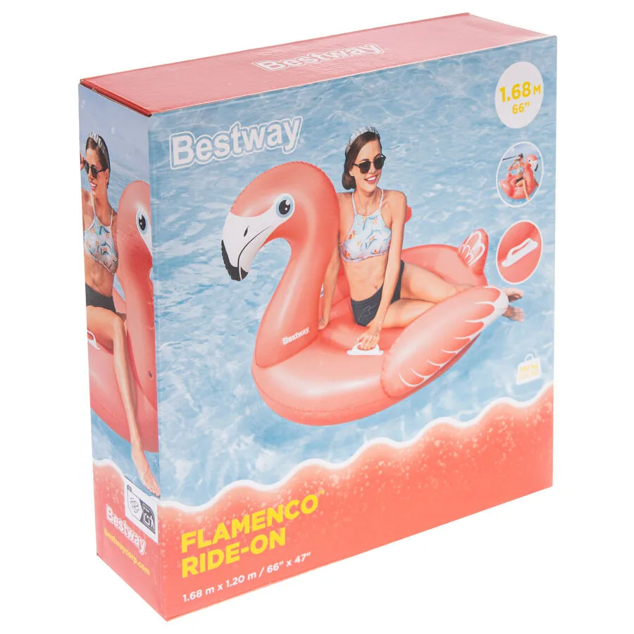 La colchoneta hinchable flamenco gigante es el flotador que no necesita presentación. Con unas dimensiones de 170 x 158 x 141 cm, este flamenco rosa XXL es tan grande, tan llamativo y tan cómodo que se convierte en el centro de atención de cualquier piscina, playa o fiesta acuática al instante.