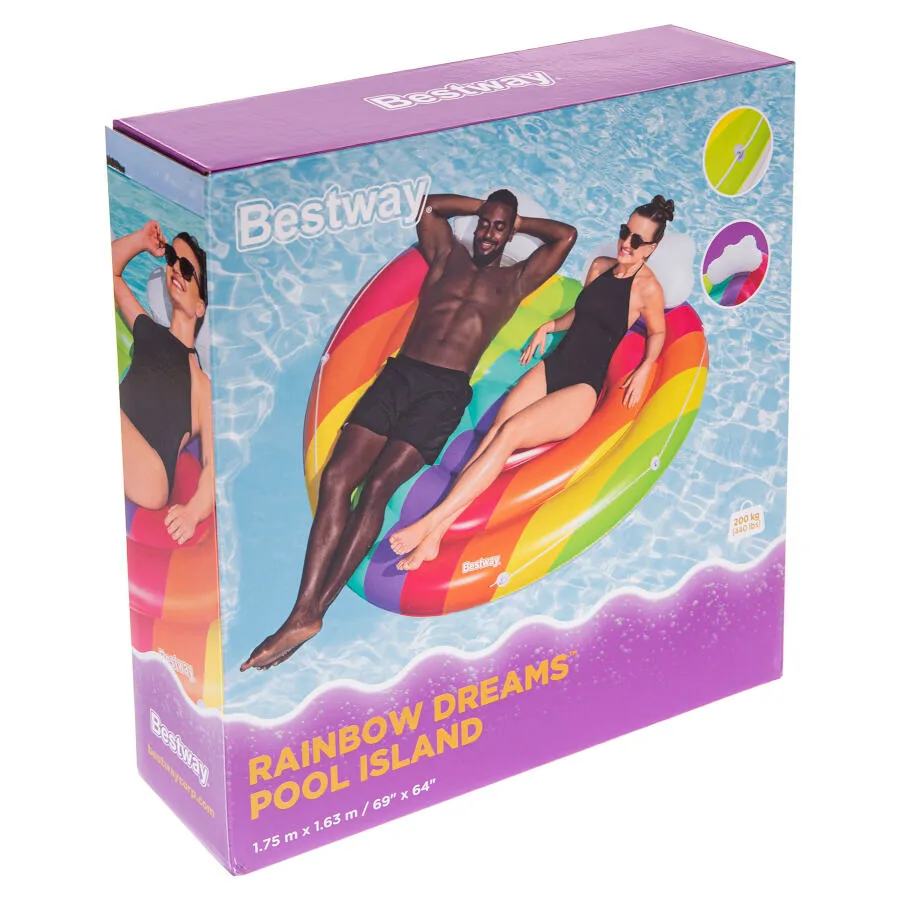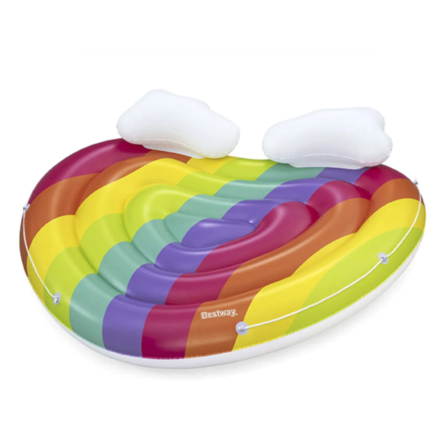La colchoneta hinchable isla Rainbow Dreams es el flotador perfecto para quienes creen que la diversión se multiplica cuando se comparte. Con un diseño multicolor que incluye todos los tonos del arcoíris, una superficie amplia para varias personas y materiales que aguantan lo que les eches, esta colchoneta hinchable isla Rainbow Dreams transforma cualquier piscina o día de playa en un festival flotante de colores y risas.