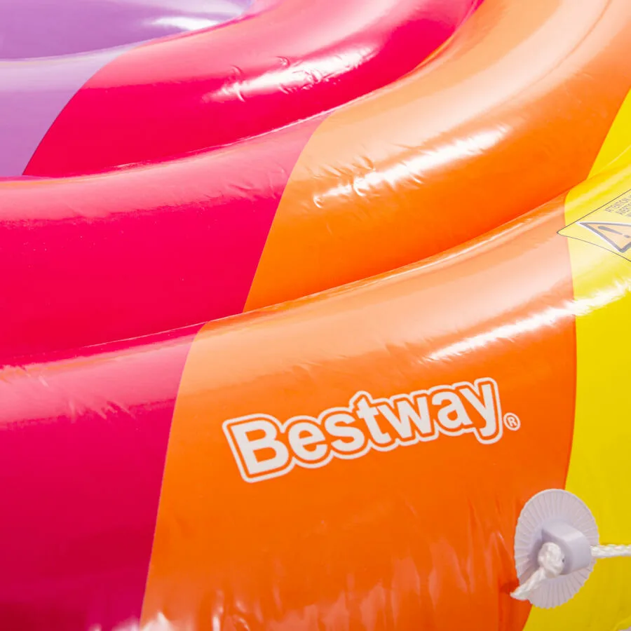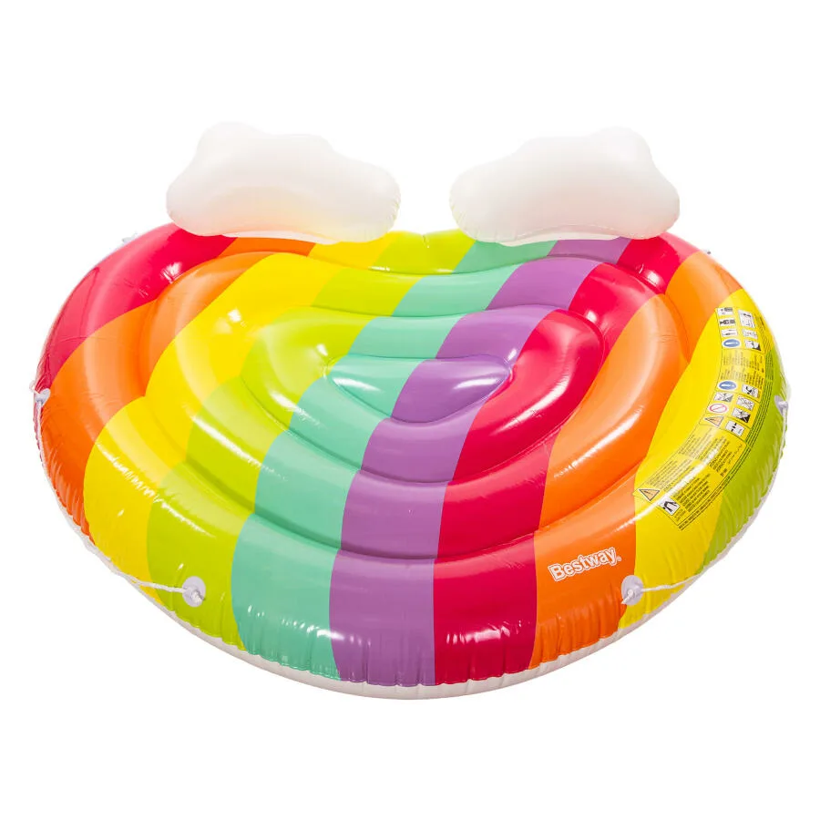 Diseño multicolor estilo arcoíris. Superficie amplia para varias personas. Material resistente y duradero, apto para cloro y agua salada. Válvulas de seguridad para inflado rápido y sellado fiable. Estructura estable para flotar sin preocupaciones. Ideal para piscina, playa y lago. Precio: 24,32 euros IVA incluido. SKU: 121414. EAN: 6941607348697.